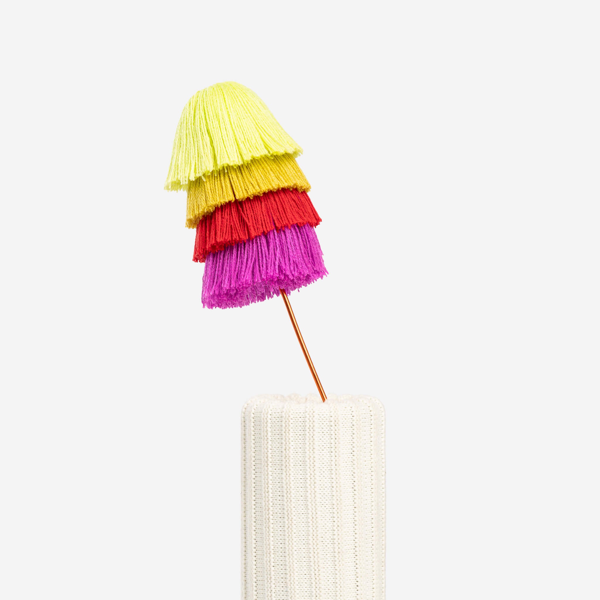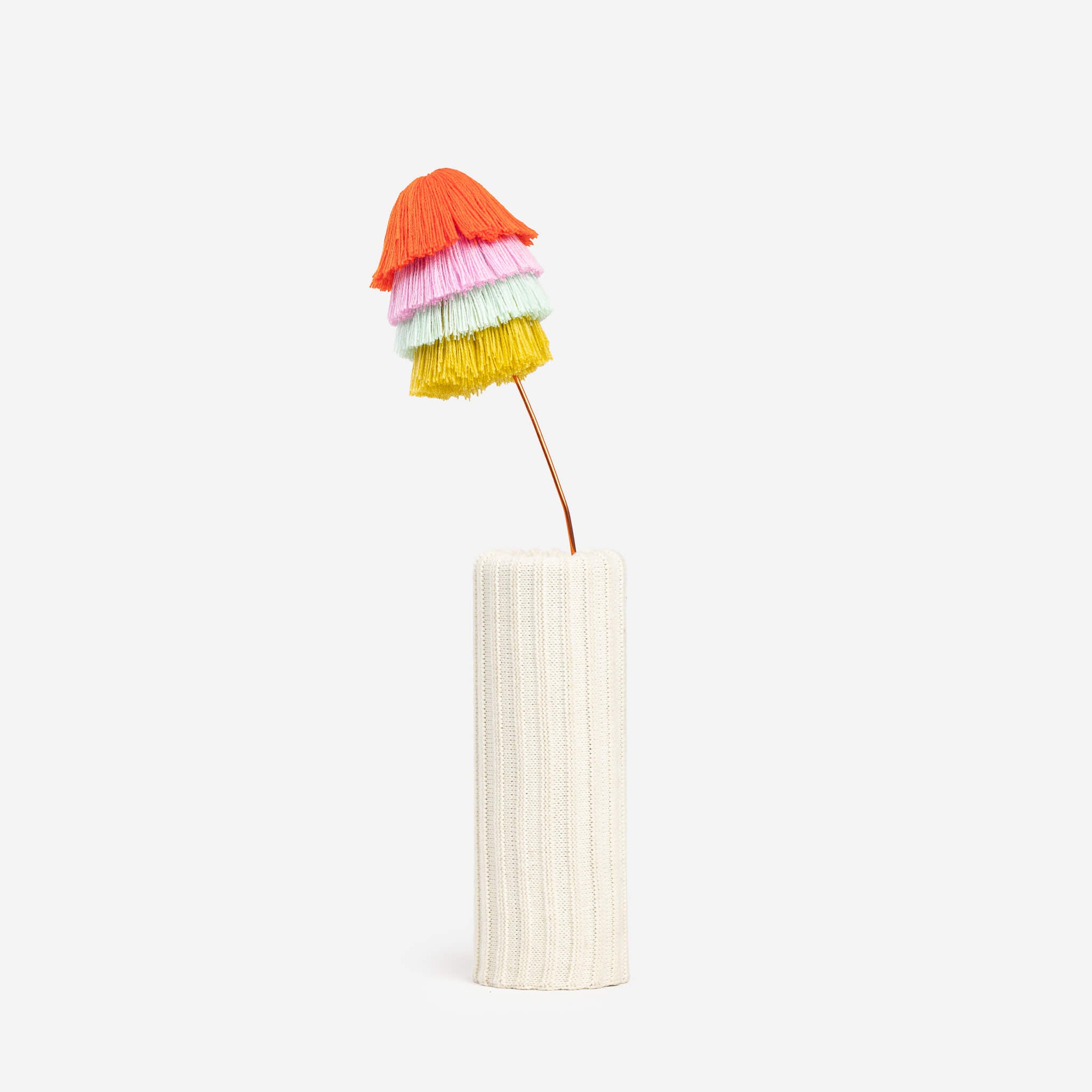 Extra-large 4” stacked tassel flower on a flexible yet sturdy 15” long metal wire. Packs a punch solo or pairs perfectly with our Tassel Flower Bouquet. Hand made using repurposed deadstock yarn. Each unique.