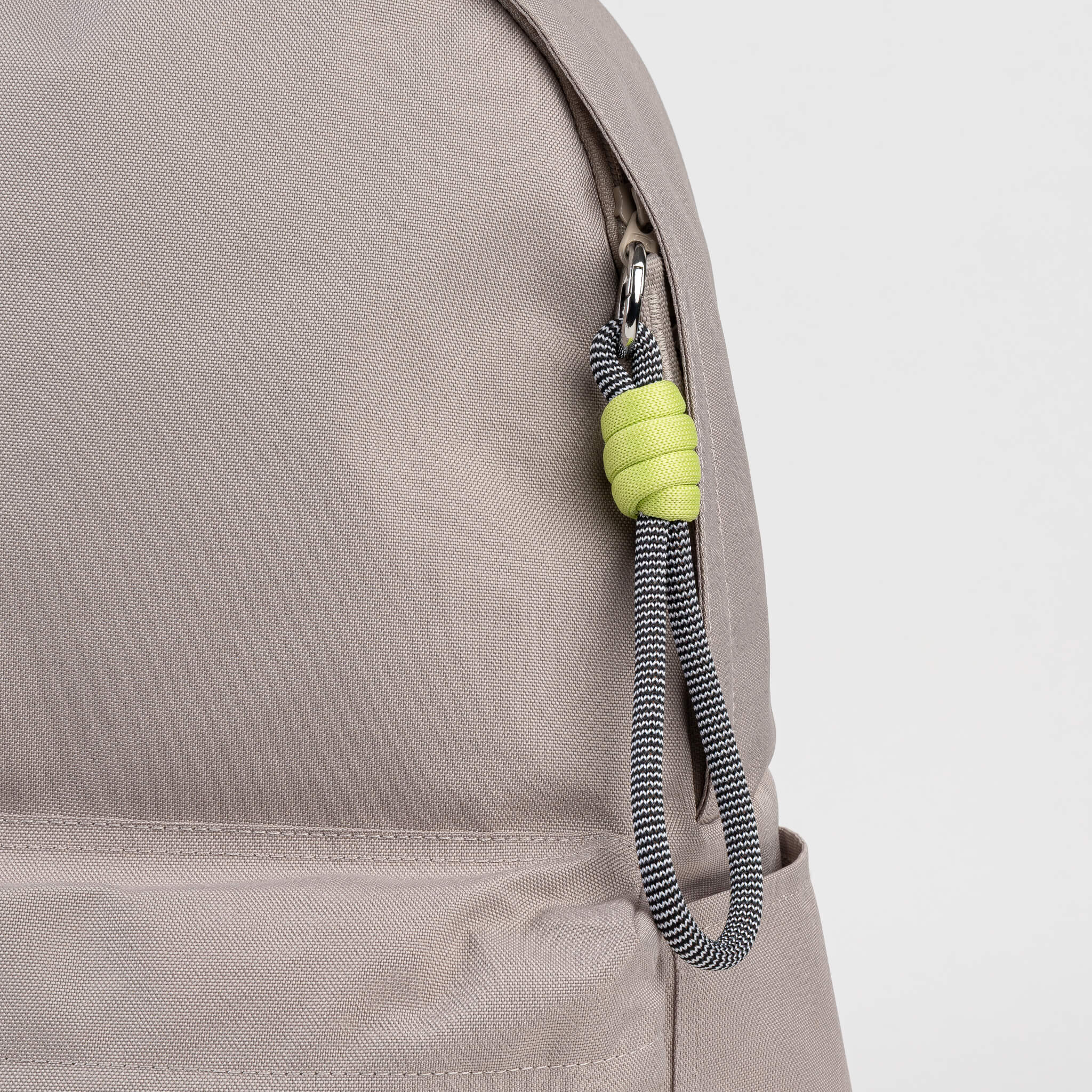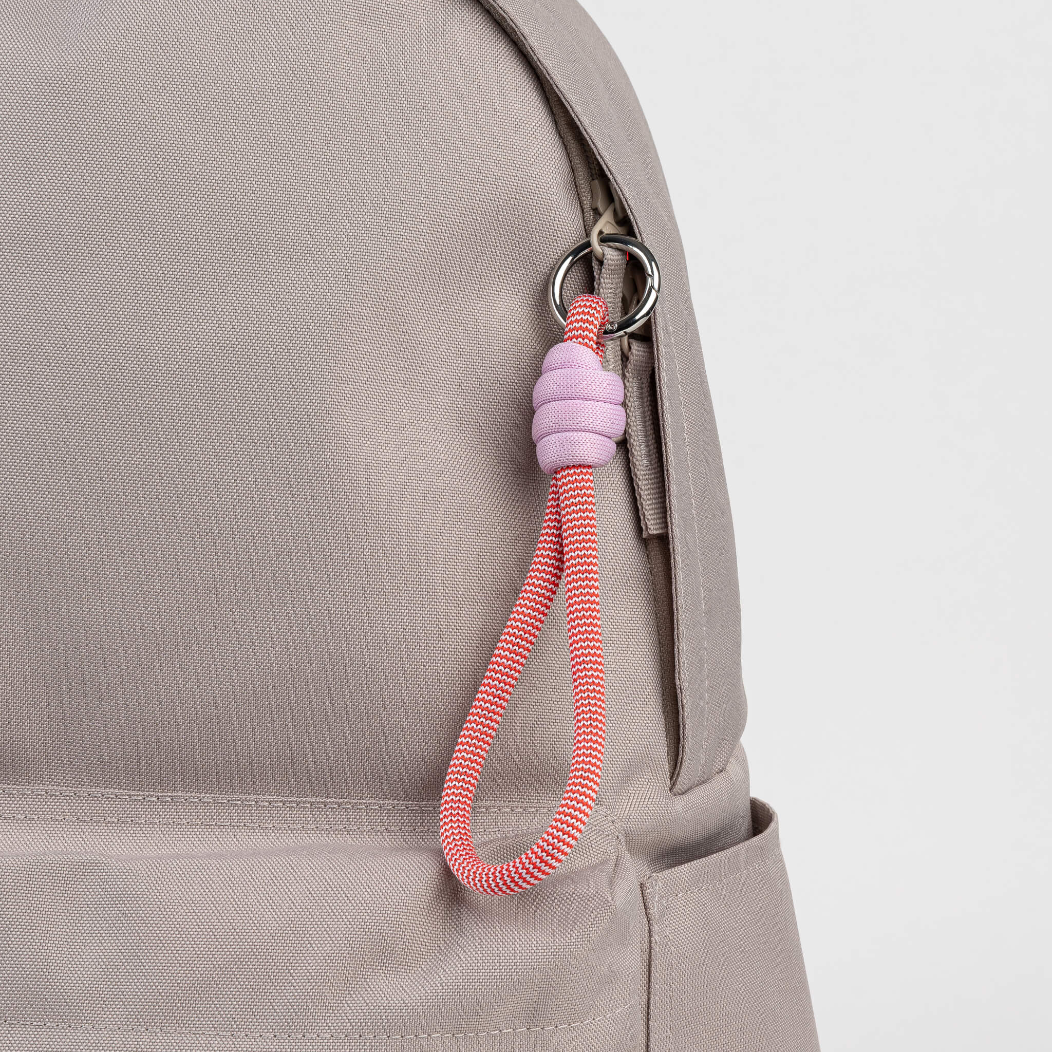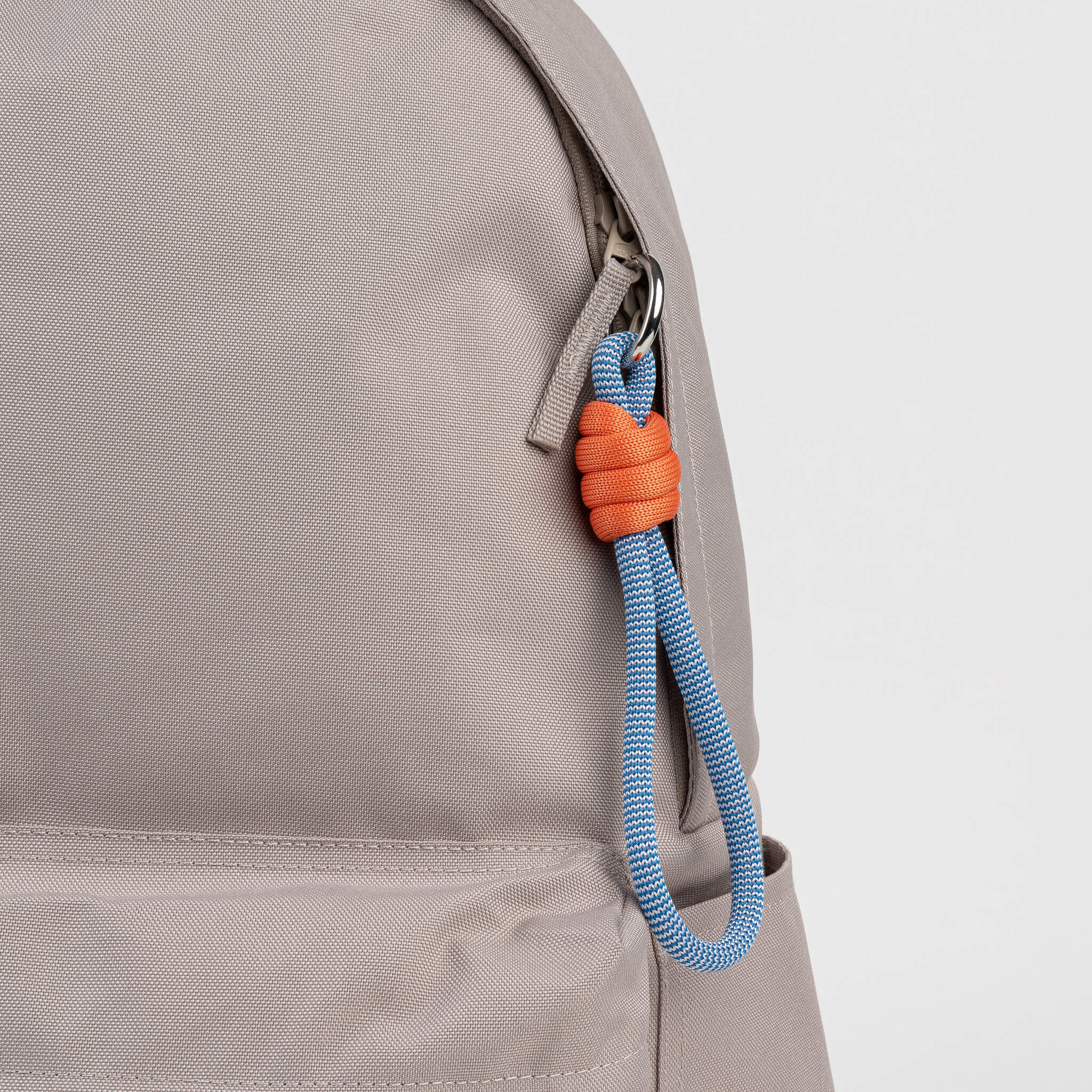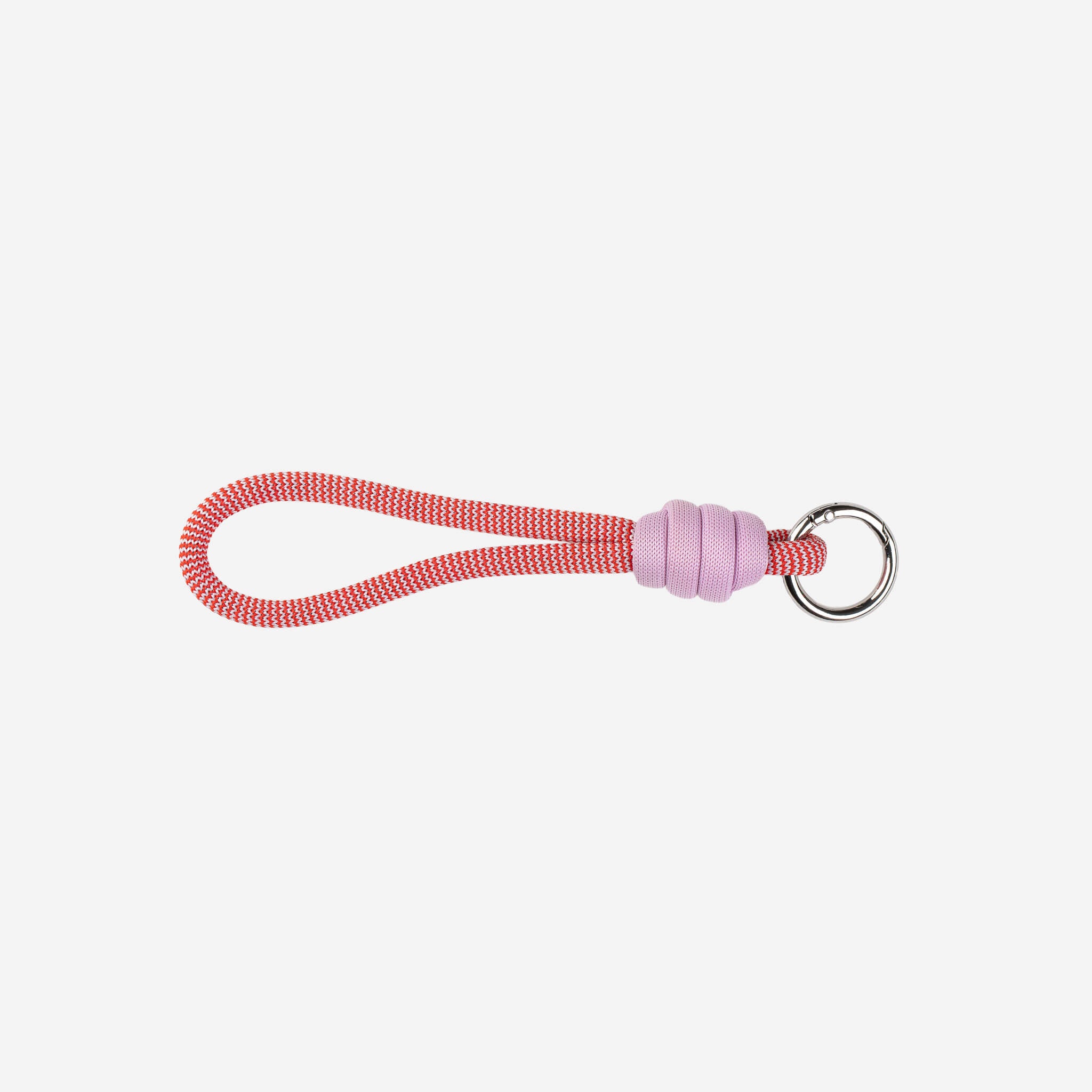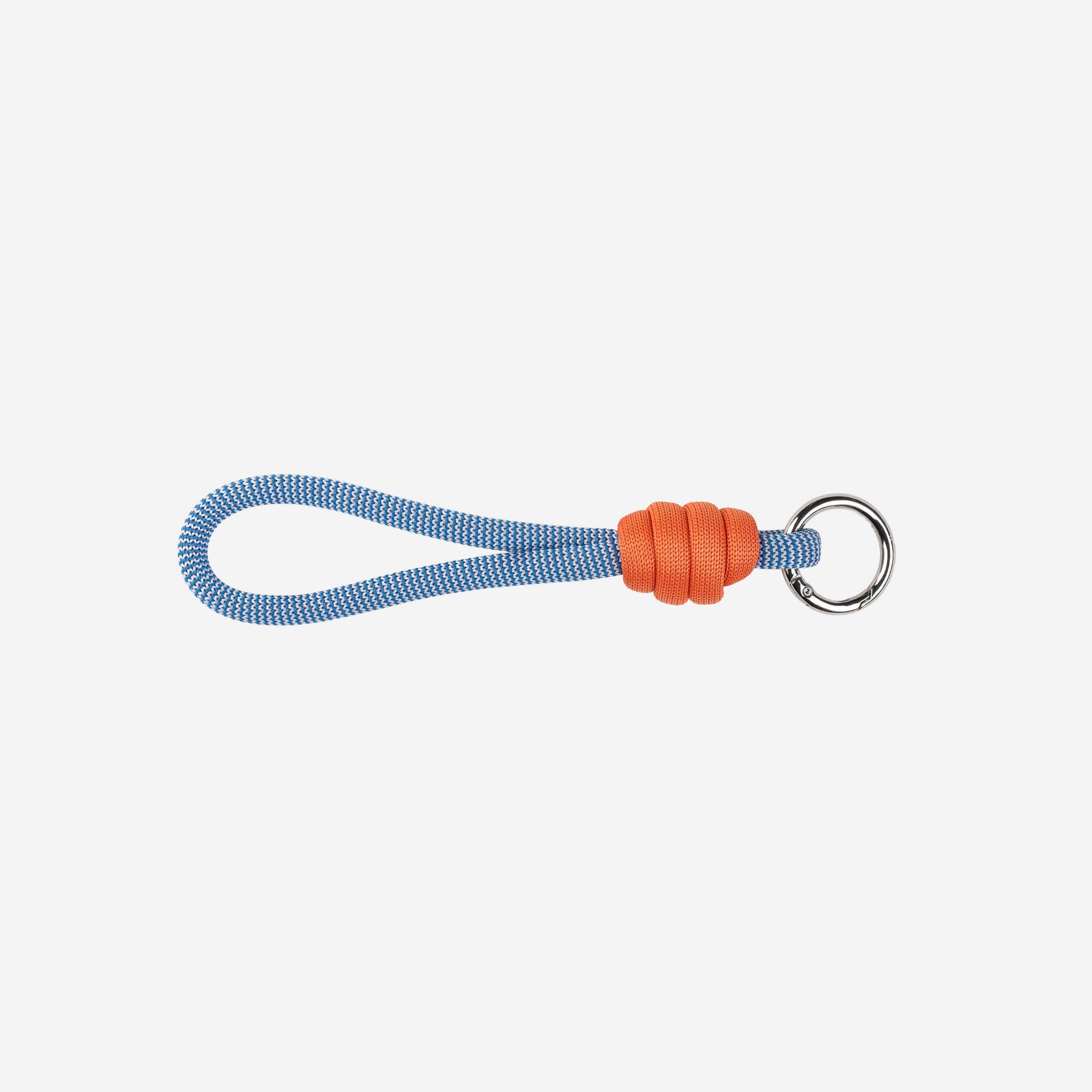 Crafted from sturdy, bright cord stuffed with deadstock and waste yarn, this striped two-tone keychain is a fun addition to your keys, bag, or pouch. Finished with a round carabiner.