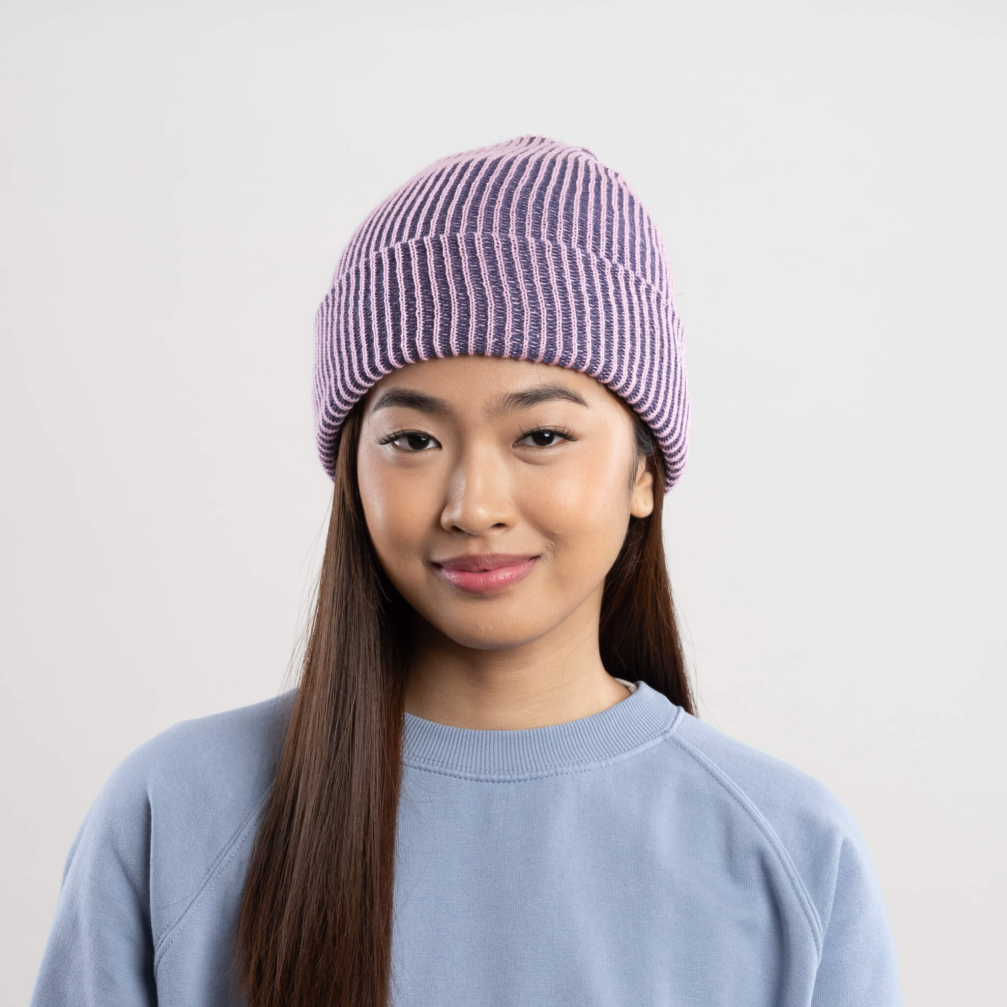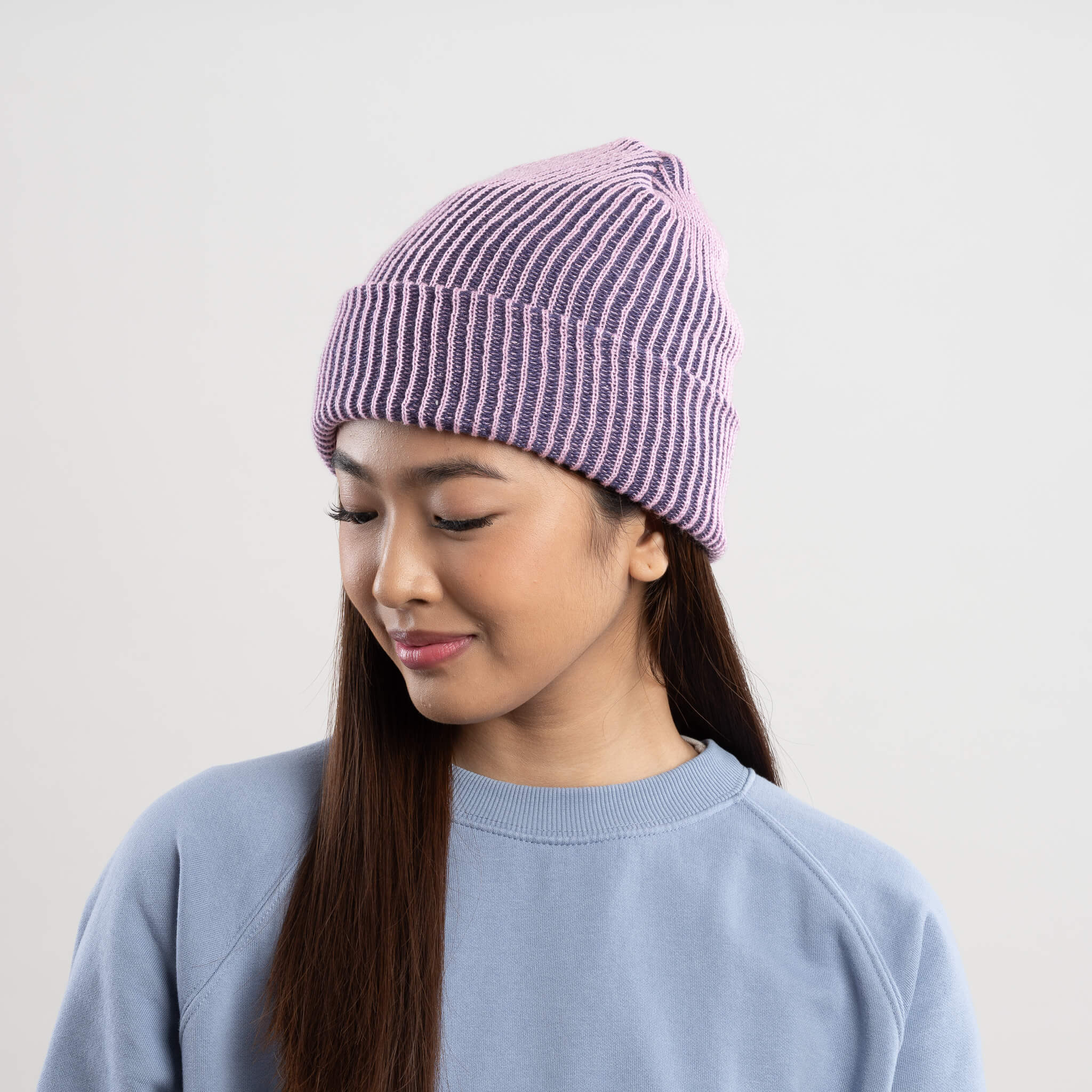 Our bestselling two-tone colorful rib knitted beanie. Soft and lightweight for year-round wear. Cozy, hypoallergenic yarn and comfy, seamless construction. Can be worn as a cuffed hat or slouchy beanie. Stretches for a perfect, flattering fit on heads of all sizes and shapes. Unisex, one size.