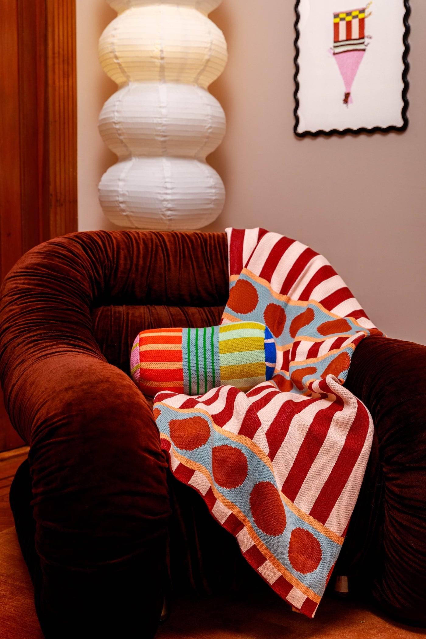 stack of bright knit throw blankets knit with deadstock yarn