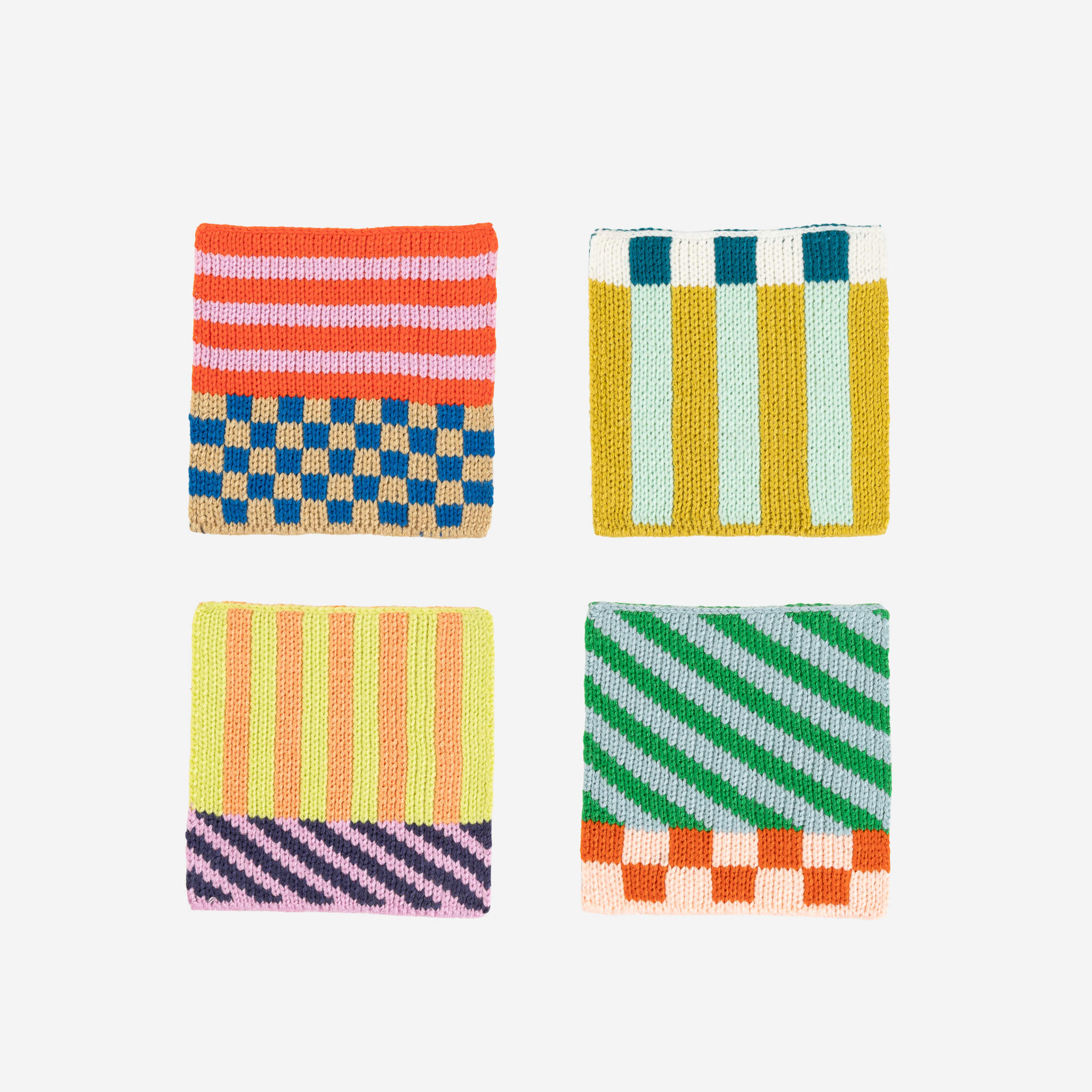 For your next dinner party or cute coffee table upgrade. Set of 4 coasters with mix-and-match patchwork patterning. Set the table with matching placemats for a put-together look.