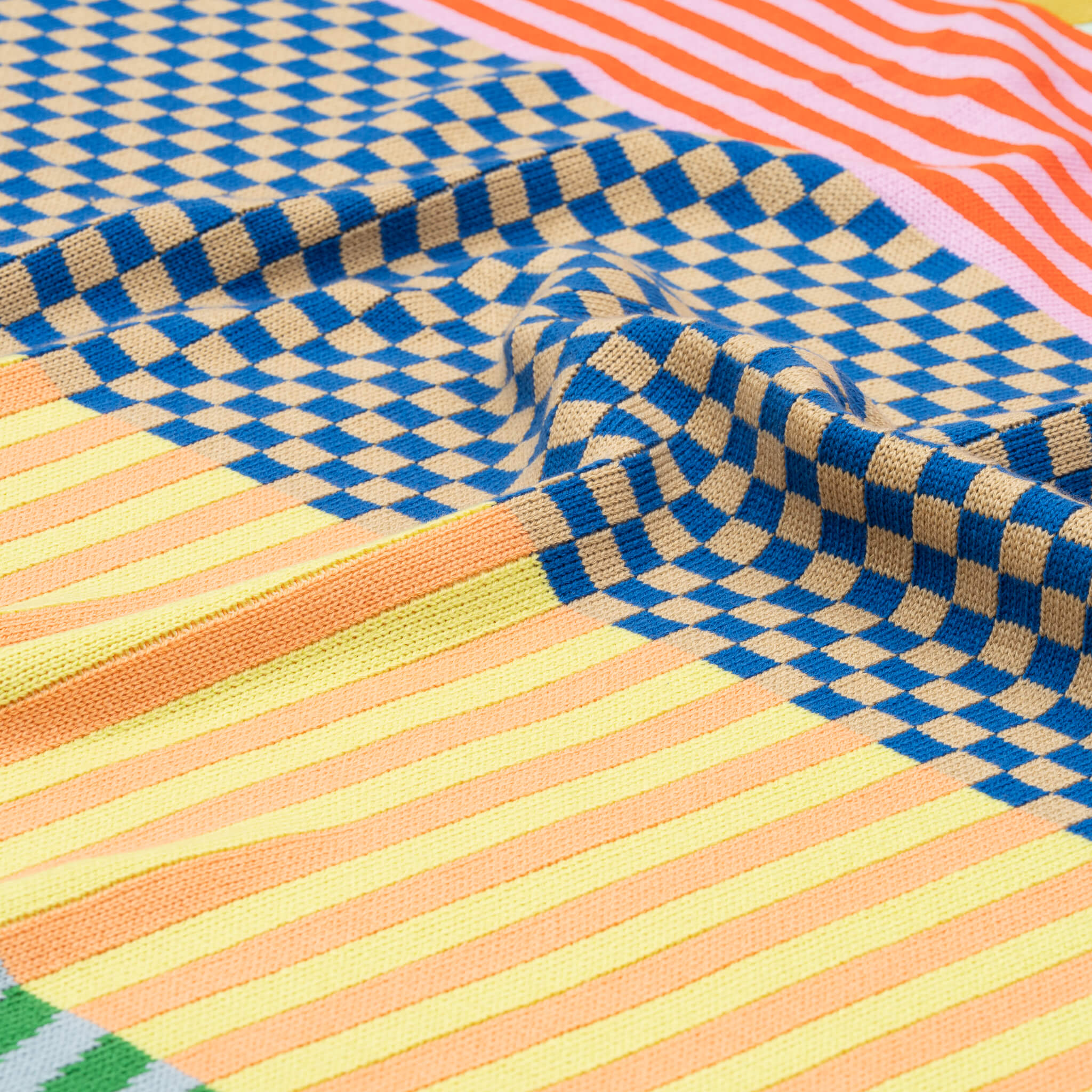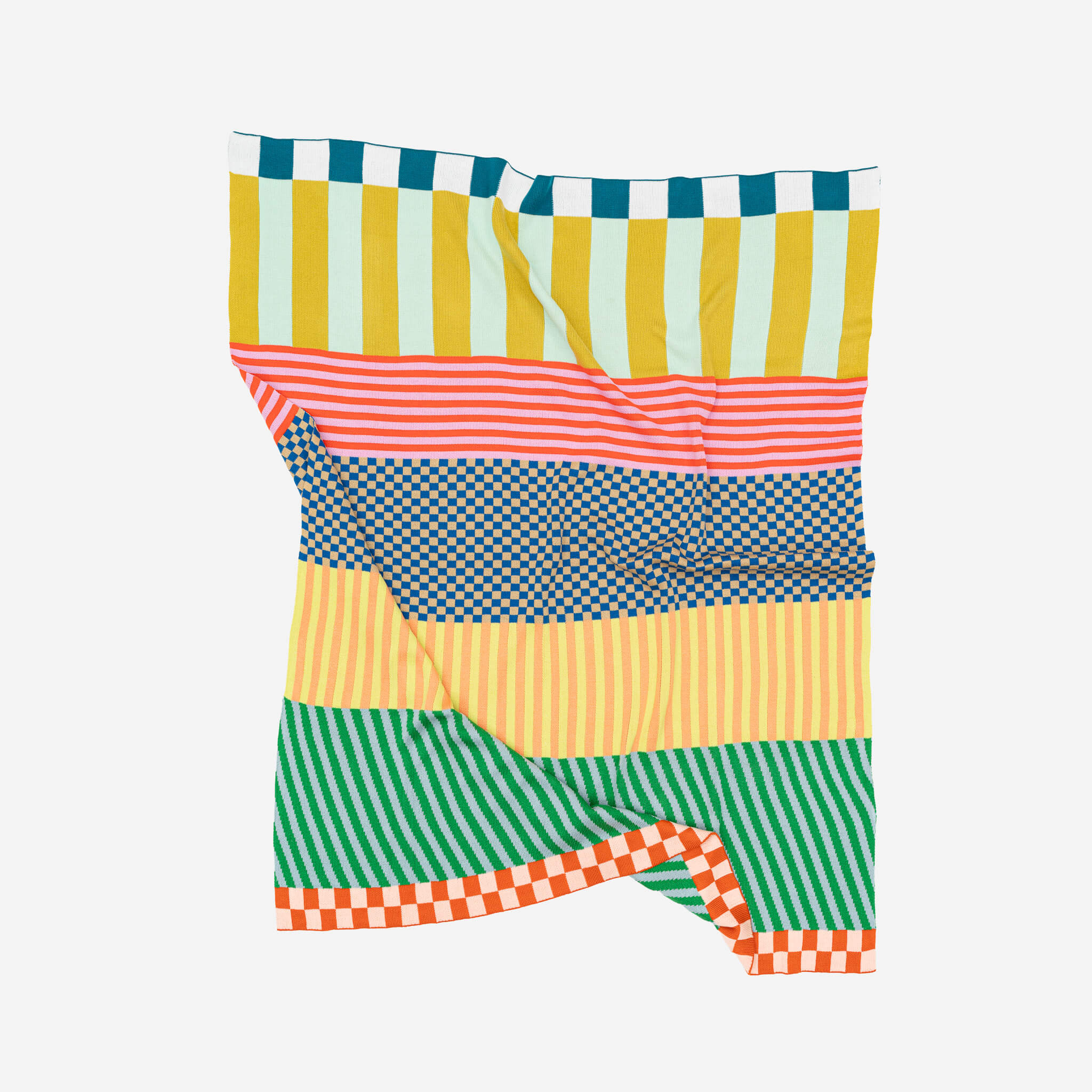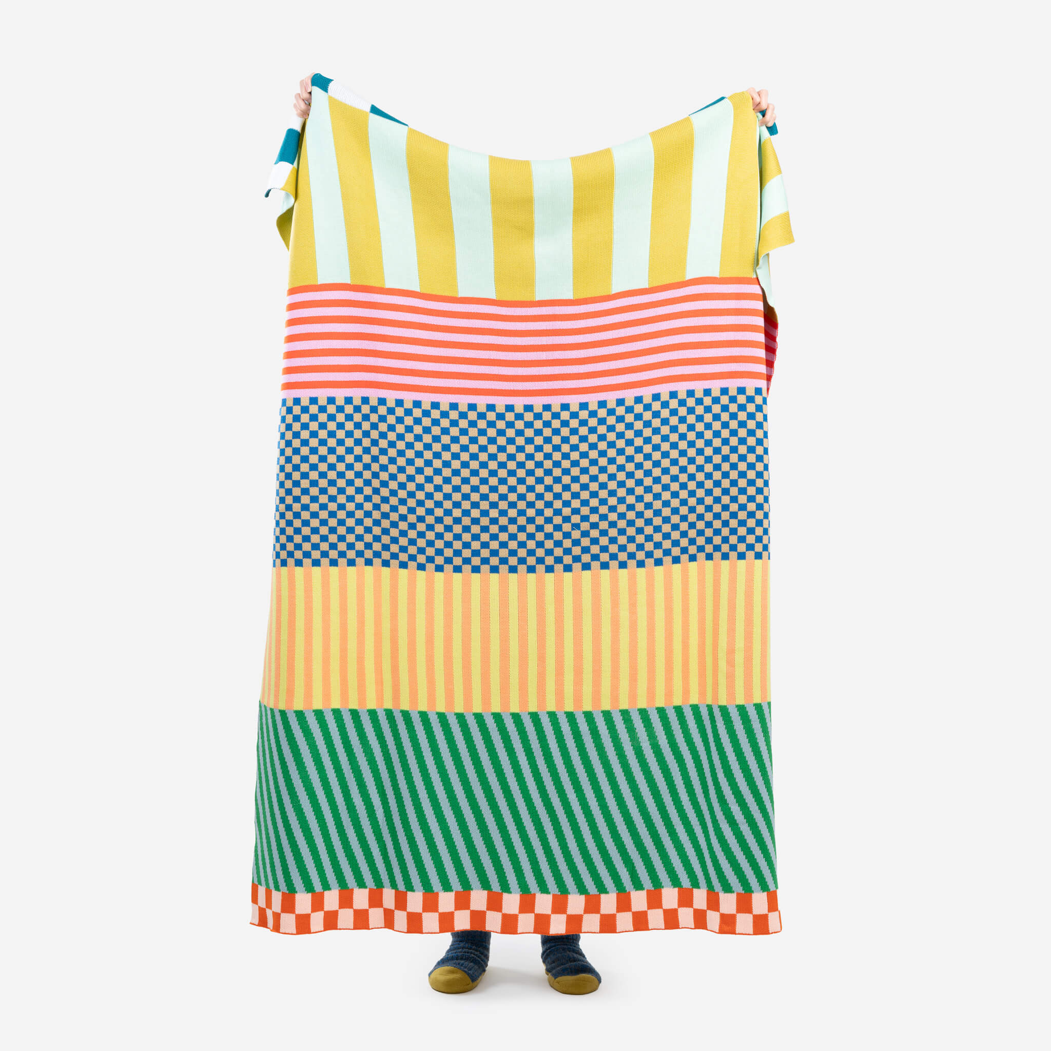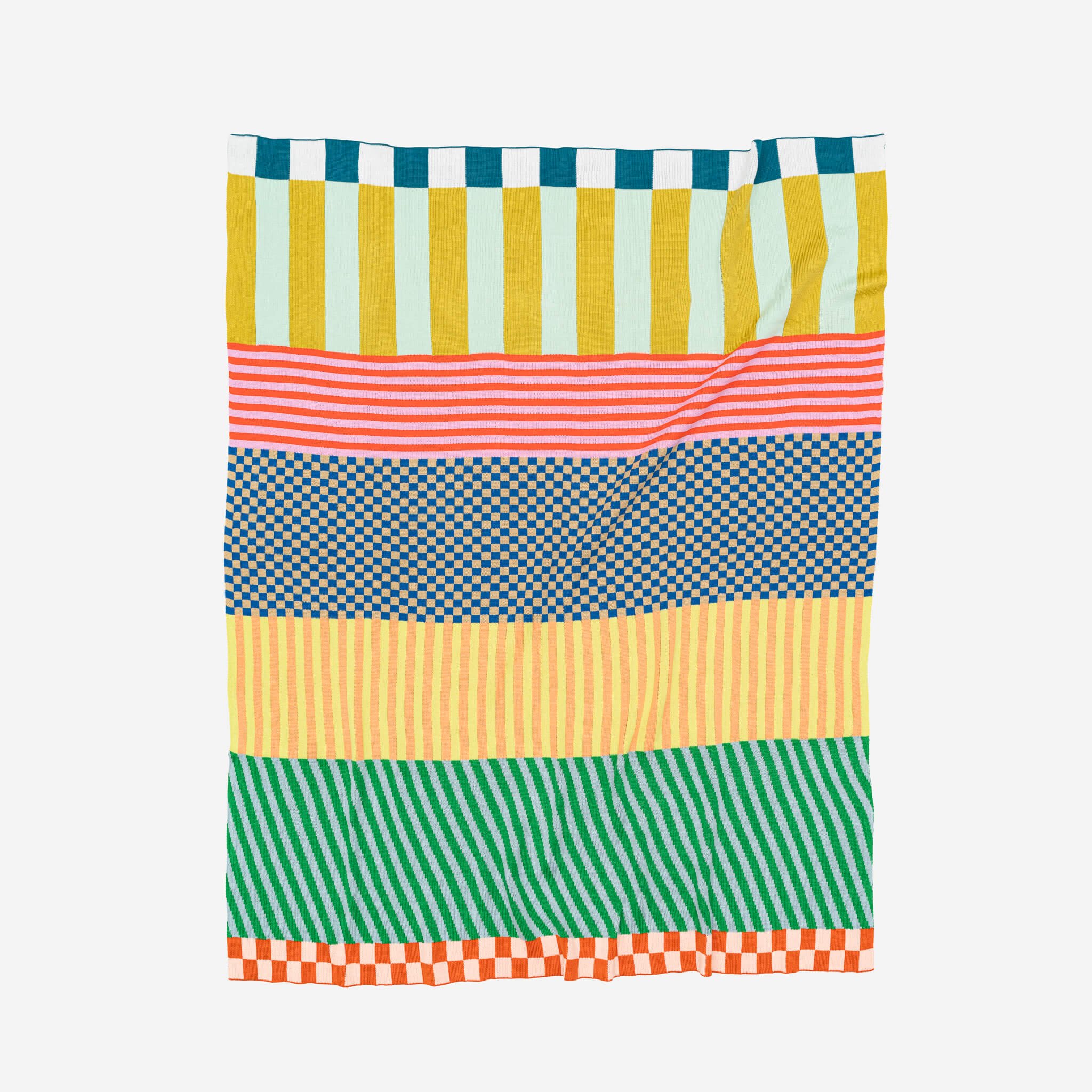 Jacquard knit throw with graphic pattern-mixing motif. Mix and match with contrasting patterns or layer with coordinating pillows,ย here and here, for a high-impact look. Cotton-weight for year-round use. Fully reversible. Knit with new and repurposed deadstock yarn.ย